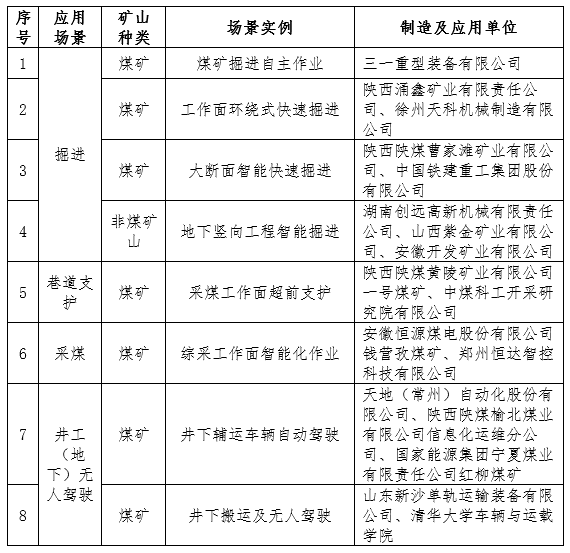 天辰网址:《矿山领域机器人典型应用场景公示名单》公布